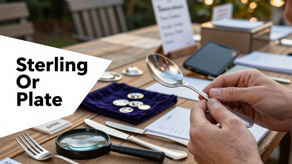 How do I tell sterling vs silver plate flatware fast at an estate sale?