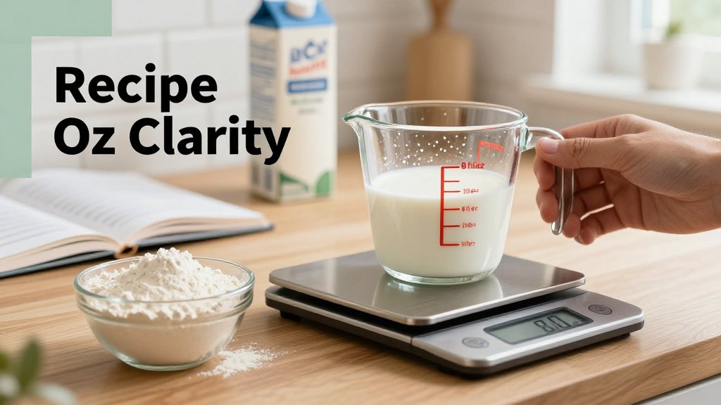 Confused by oz vs fl oz on recipes and labels? Learn the real difference between weight and volume, why 8 fl oz is not automatically 8 oz, and how to convert fluid ounces into grams for water, milk, oil, and more without ruining a bake.